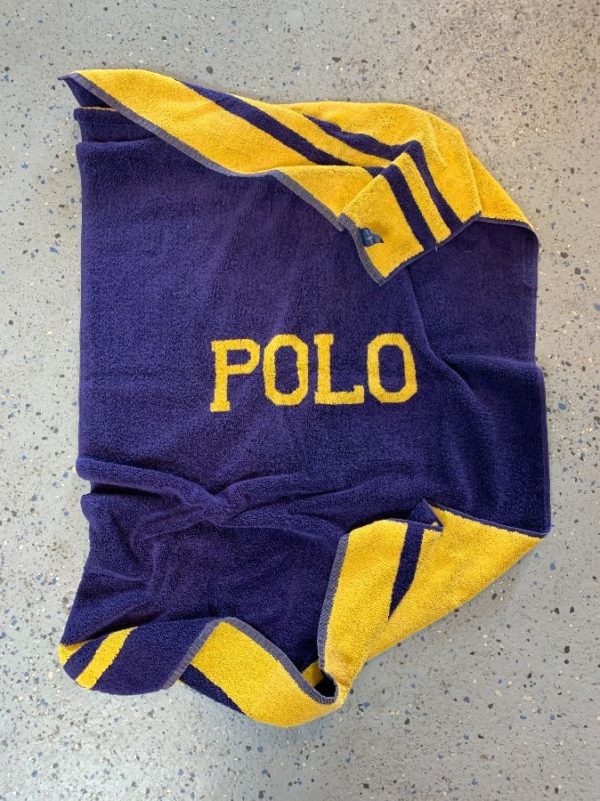 1990’S VINTAGE RALPH LAUREN POLO BEACH TOWEL, COTTON, REVERSIBLE, BLUE/YELLOW AS IS