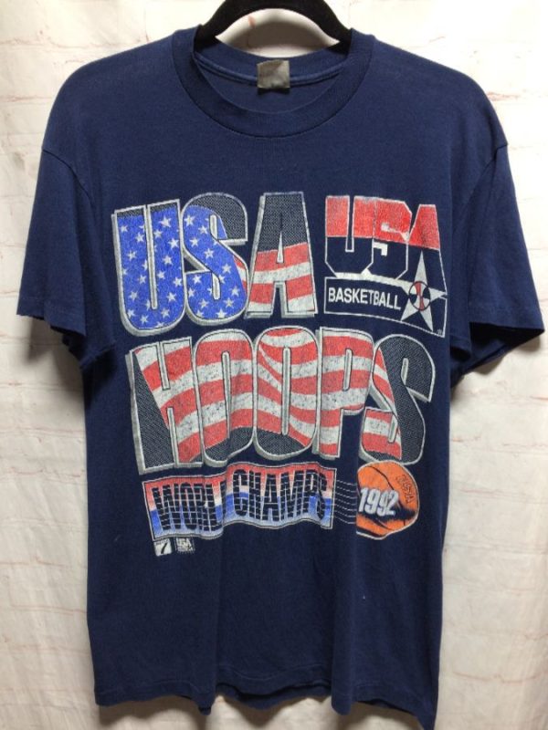1992 USA HOOPS OLYMPICS WORLD CHAMPS T-SHIRT SOFTY 50/50