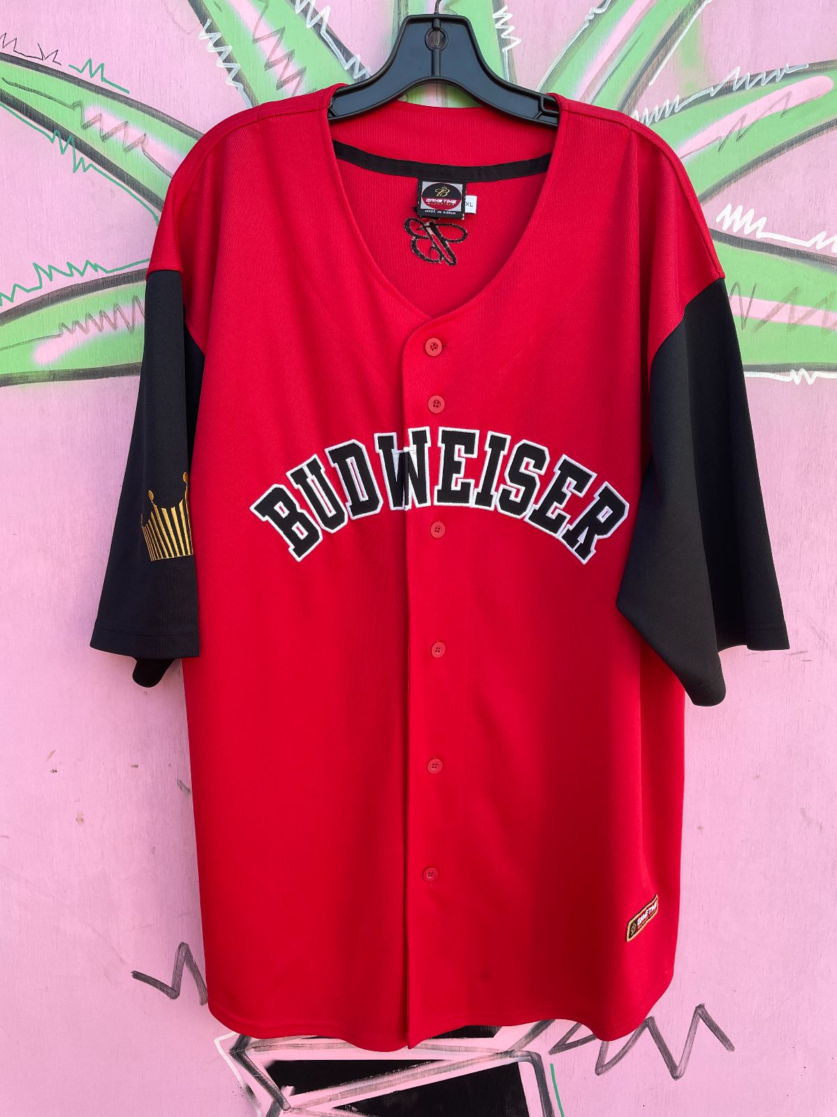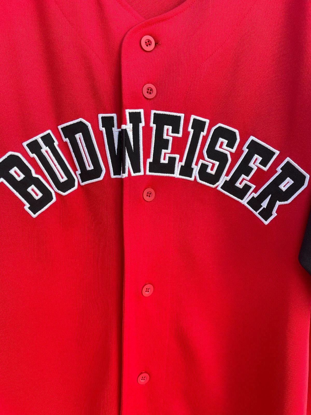 2-TONE EMBROIDERED BUDWEISER BUTTON FRONT BASEBALL JERSEY