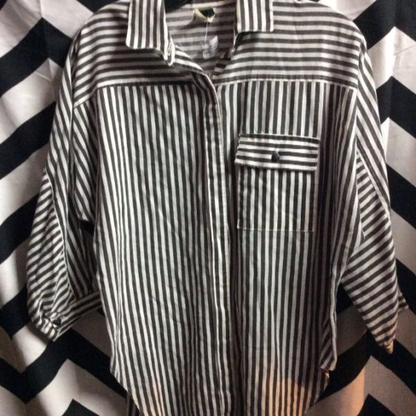 3/4 Sleeves BD Vertical Striped Shirt Left Breast Pocket