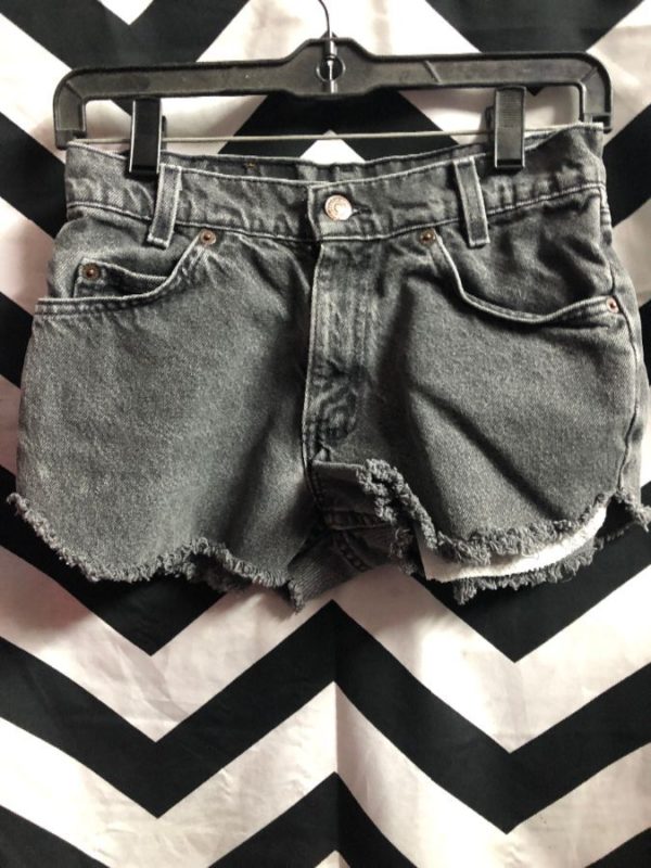Levis denim shorts, cut-off, 550 magic cut, acid washed, dark gray, size 28″W