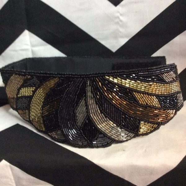 1980’s belt, beaded design, velcro closure, black/gold/brown