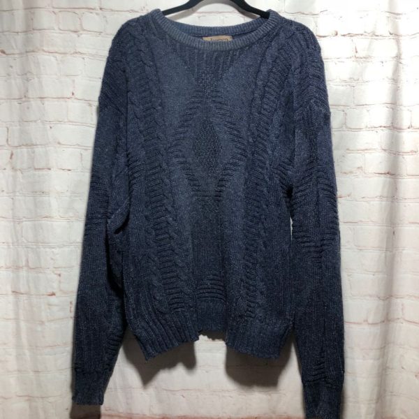 1980’s Jantzen sweater, pullover, cable knit, geometric design with diamond pattern, navy blue, size S
