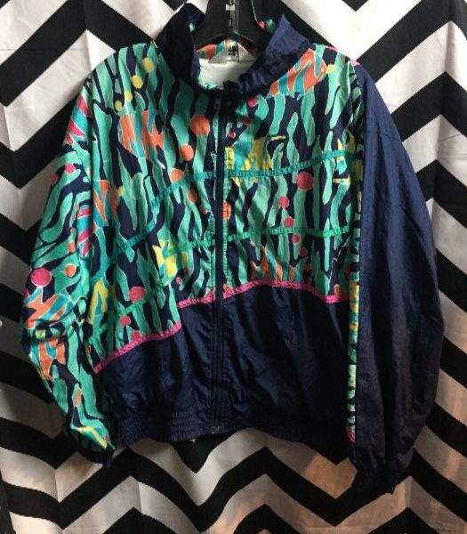 1980S WINDBREAKER W/TROPICAL FISH PRINT aqua blue / purple