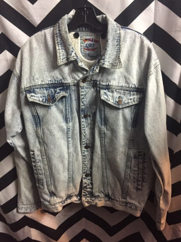 RARE 1980S-90S ACID WASH WHITE TAB LEVIS DENIM JACKET SWEATSHIRT HOODIE LINED