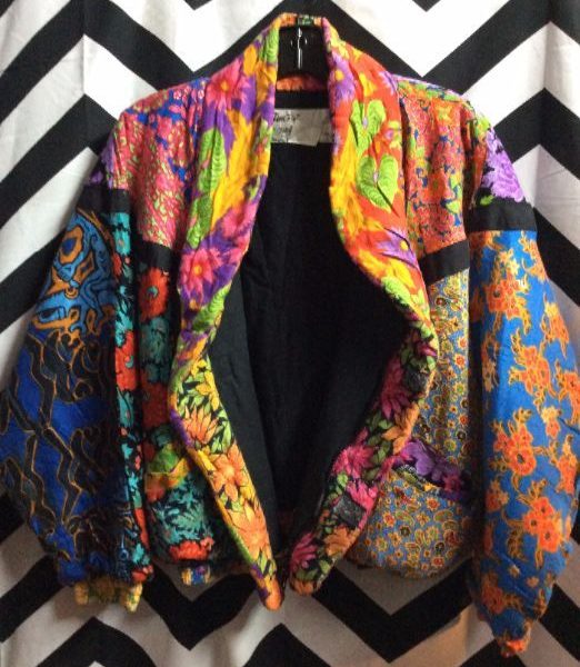 1990’s jacket, zip-up, Ethnic flower pattern, oversized sleeves, multi, size S/M