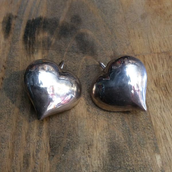 Earrings, 3D, heart drop, 925 sterling silver, silver