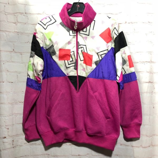 1980’S ABSTRACT GEOMETRIC PRINT W/ SWEATSHIRT PANELS WINDBREAKER