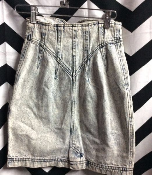 1980’S DENIM SKIRT – FULL ZIP – HIGH WAISTED – ACID WASH