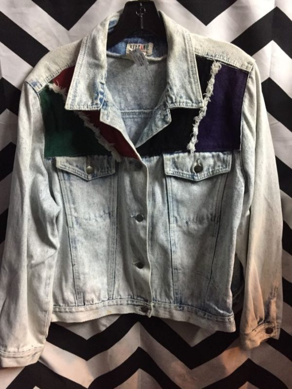 ACID WASH DENIM JACKET COLOR-BLOCK SUEDE PANELS