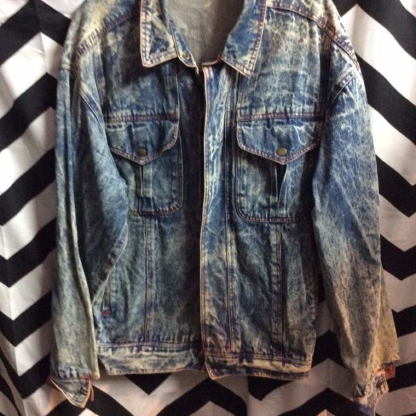 DENIM JACKET – FRONT POCKETS – CONTRASTING COLLAR & CUFFS – ACID WASH