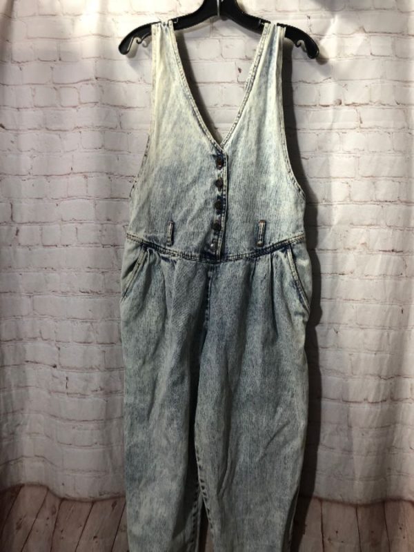 1980’S ACID WASH DENIM OVERALLS COTTON JUMPSUIT BUTTON-UP TOP