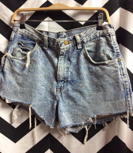 WRANGLER DENIM SHORTS – CUTOFF – FRAYED – ACID WASH – DISTRESSED