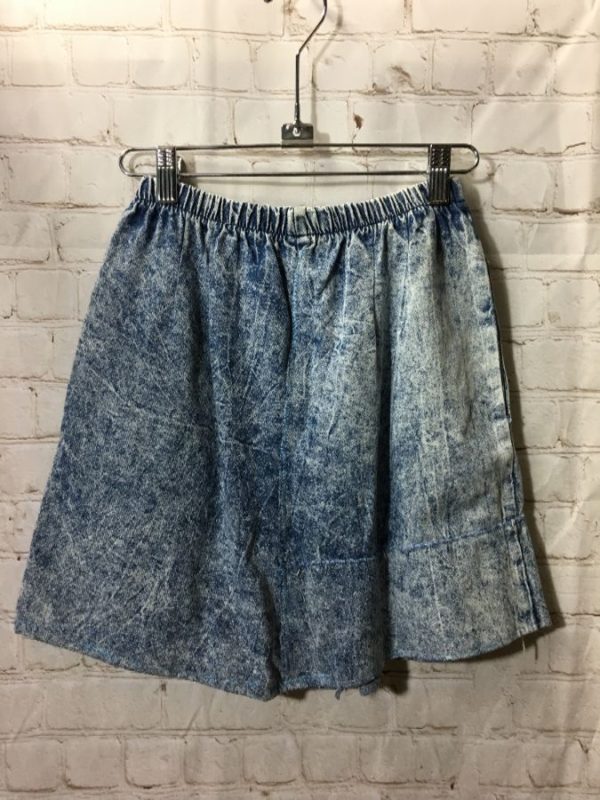 ACID WASHED DENIM ELASTIC WAIST SKIRT W/ POCKETS