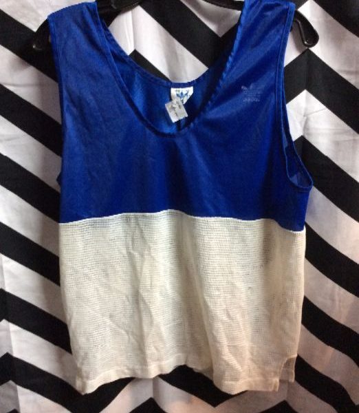 Adidas tank top, mesh panel, color block, blue/white, size S as is