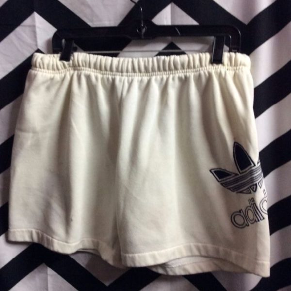 Adidas shorts, running style, elastic waist, embroidered logo, white/navy as is