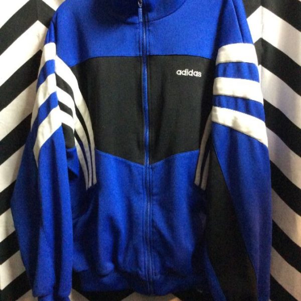ADIDAS WARMUP JACKET W/THREE ARM STRIPES & COLOR BLOCK DESIGN