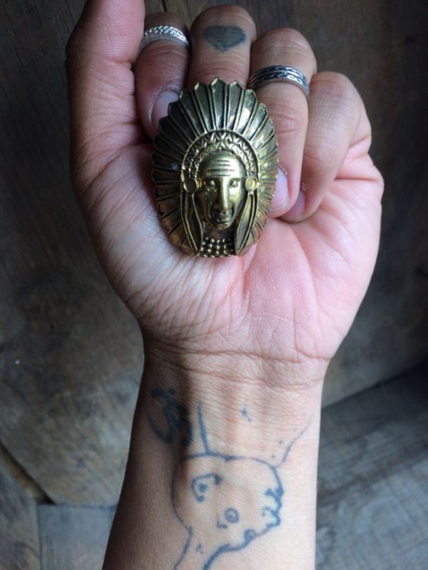 ADJUSTABLE BRASS TRIBAL INDIAN CHIEF HEAD RING