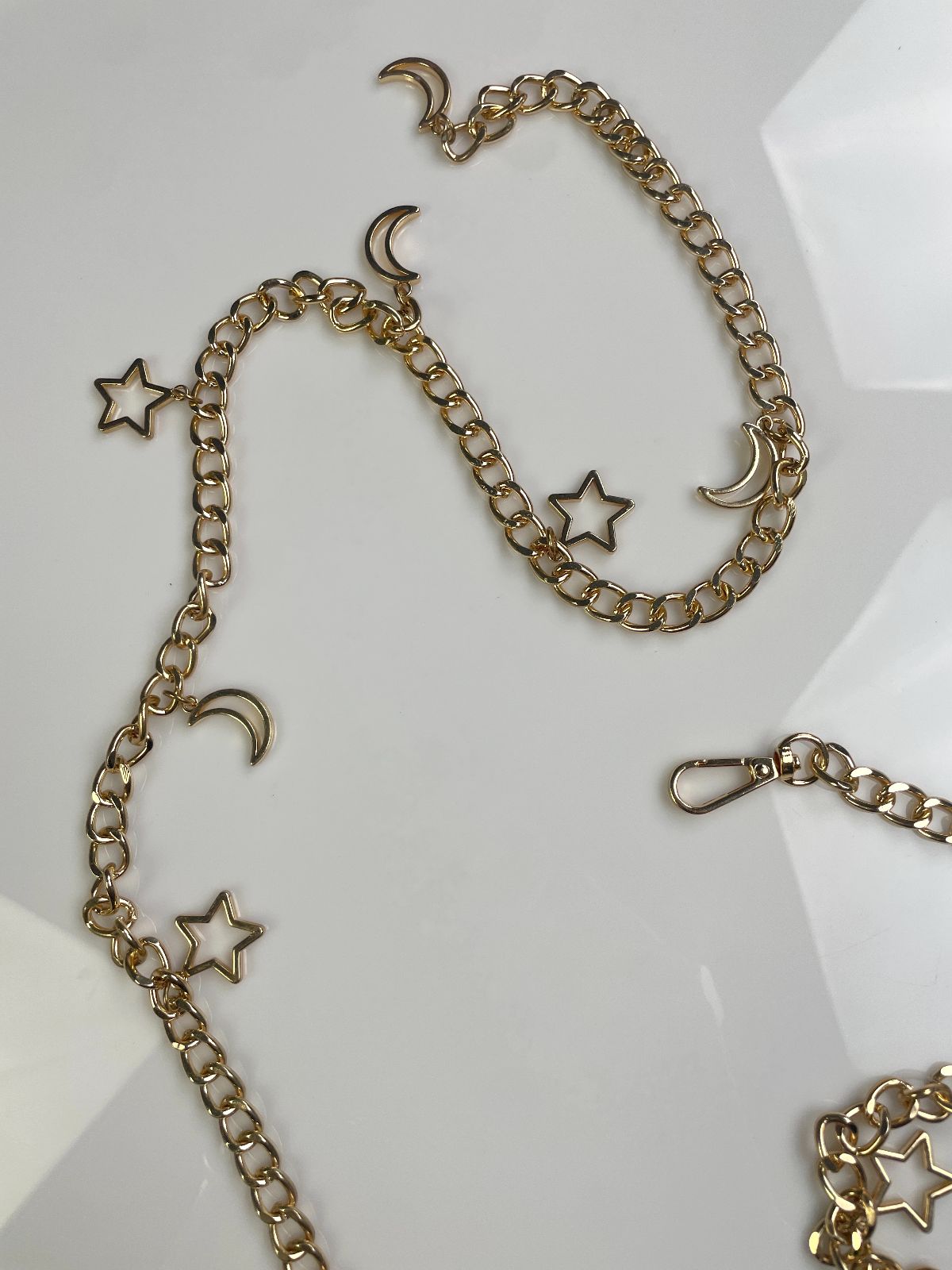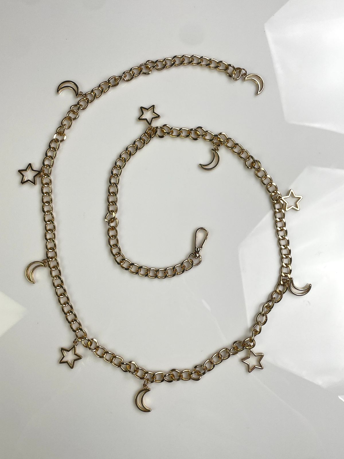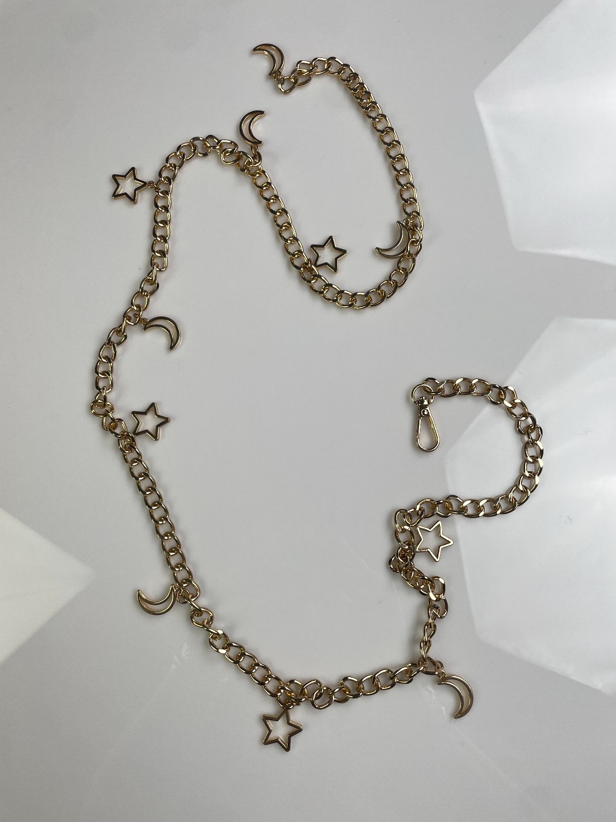 ADORABLE! 1990S | Y2K GOLD PLATED STAR & MOON CHARM CHAIN LINK BELT