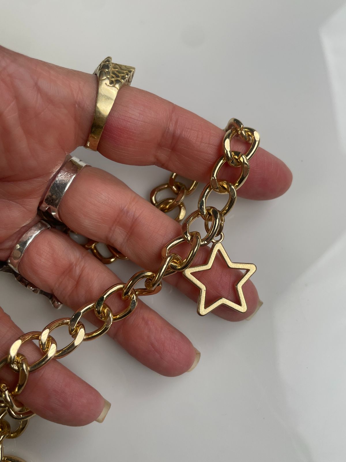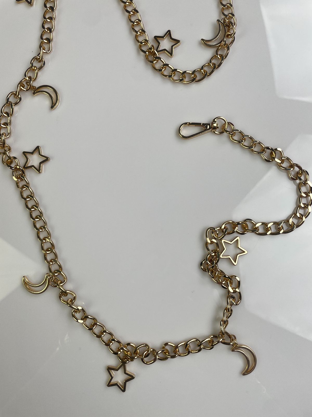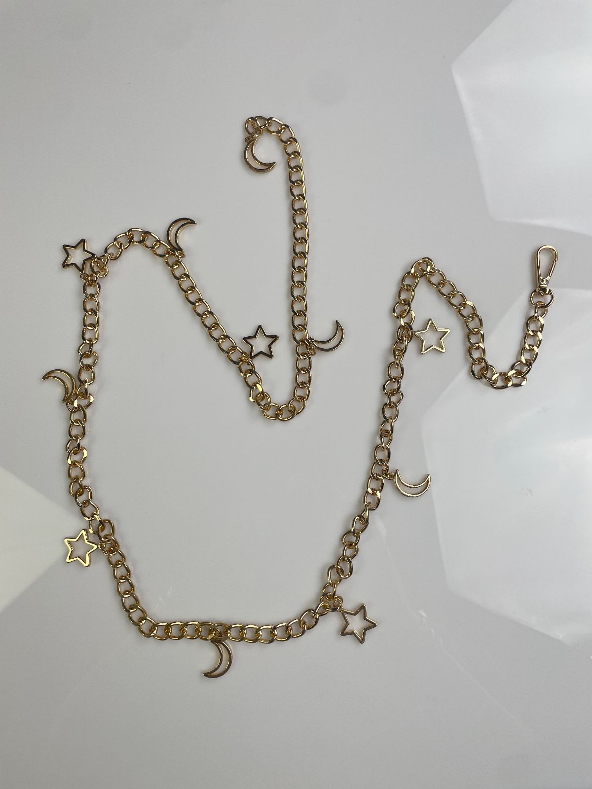 ADORABLE! 1990S | Y2K GOLD PLATED STAR & MOON CHARM CHAIN LINK BELT