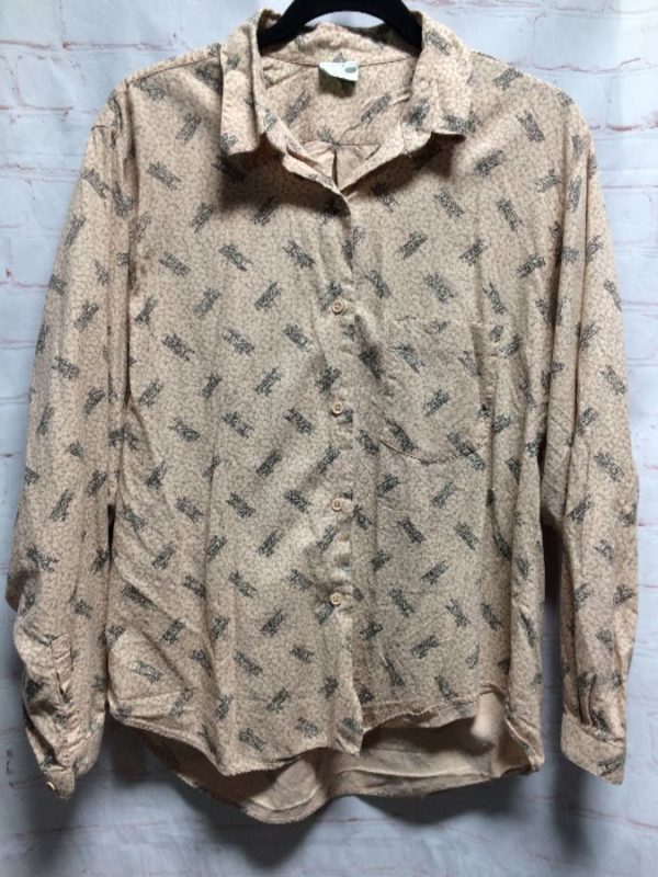 BIPLANE ALLOVER PRINT BLOUSE W/ LEFT FRONT POCKET