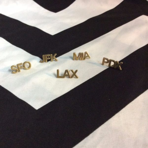 AIRPORT CODE EARRINGS MIX N MATCH 18K GOLD POSTS (LAX, JFK, MIA, SFO, YOLO) *SOLD INDIVIDUALLY