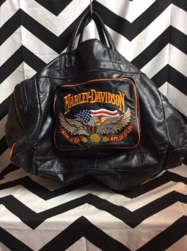 ALL LEATHER EMBROIDERED HARLEY DAVIDSON DUFFLE BAG