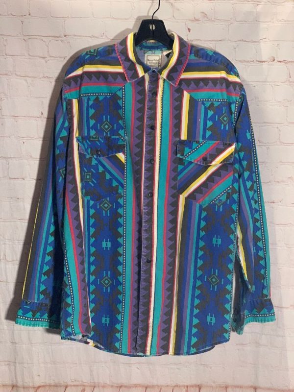 ALL OVER SOUTHWESTERN PRINT LONG SLEEVE BUTTON UP WESTERN SHIRT