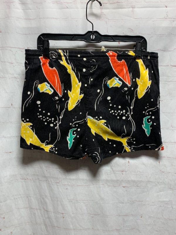 AMAZING DEADSTOCK 1980S DAYGLO NEON BEACH PRINT SHORTS WITH STRETCH WAIST