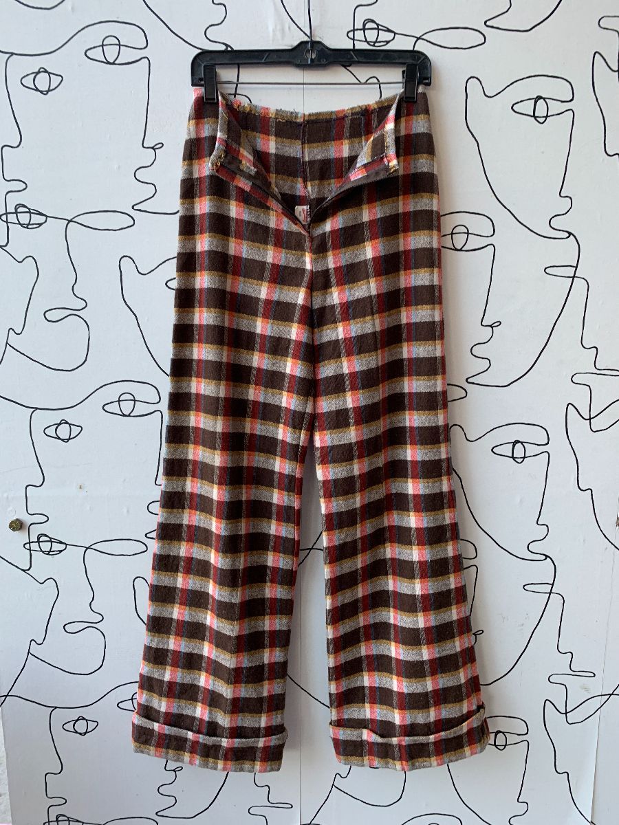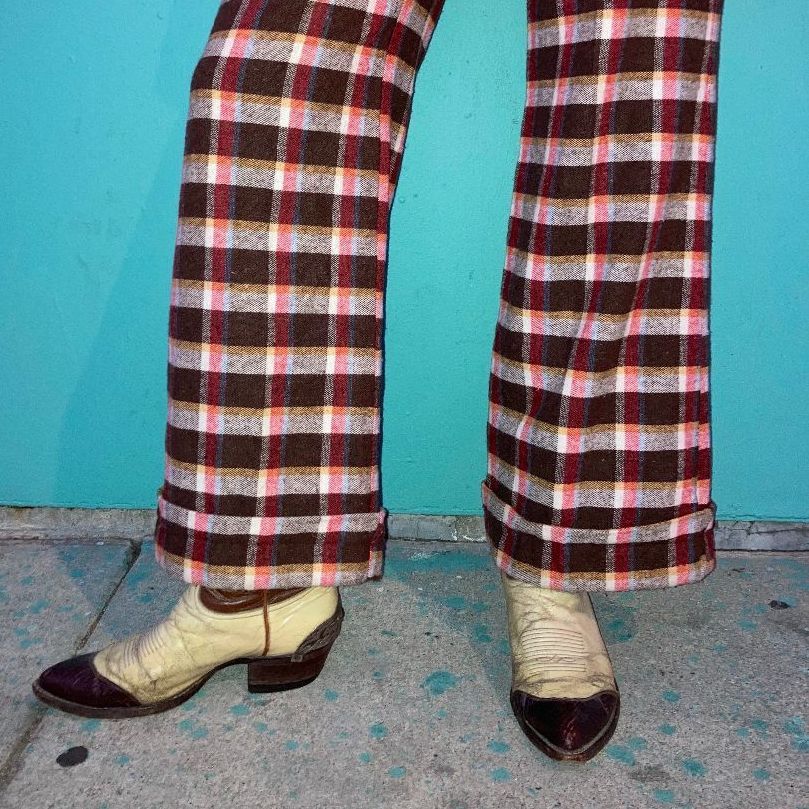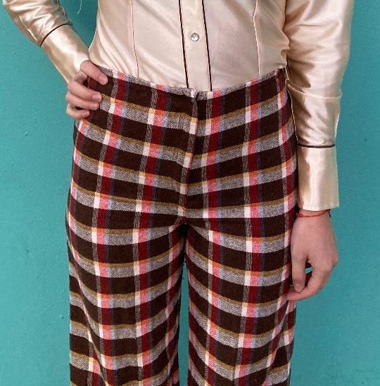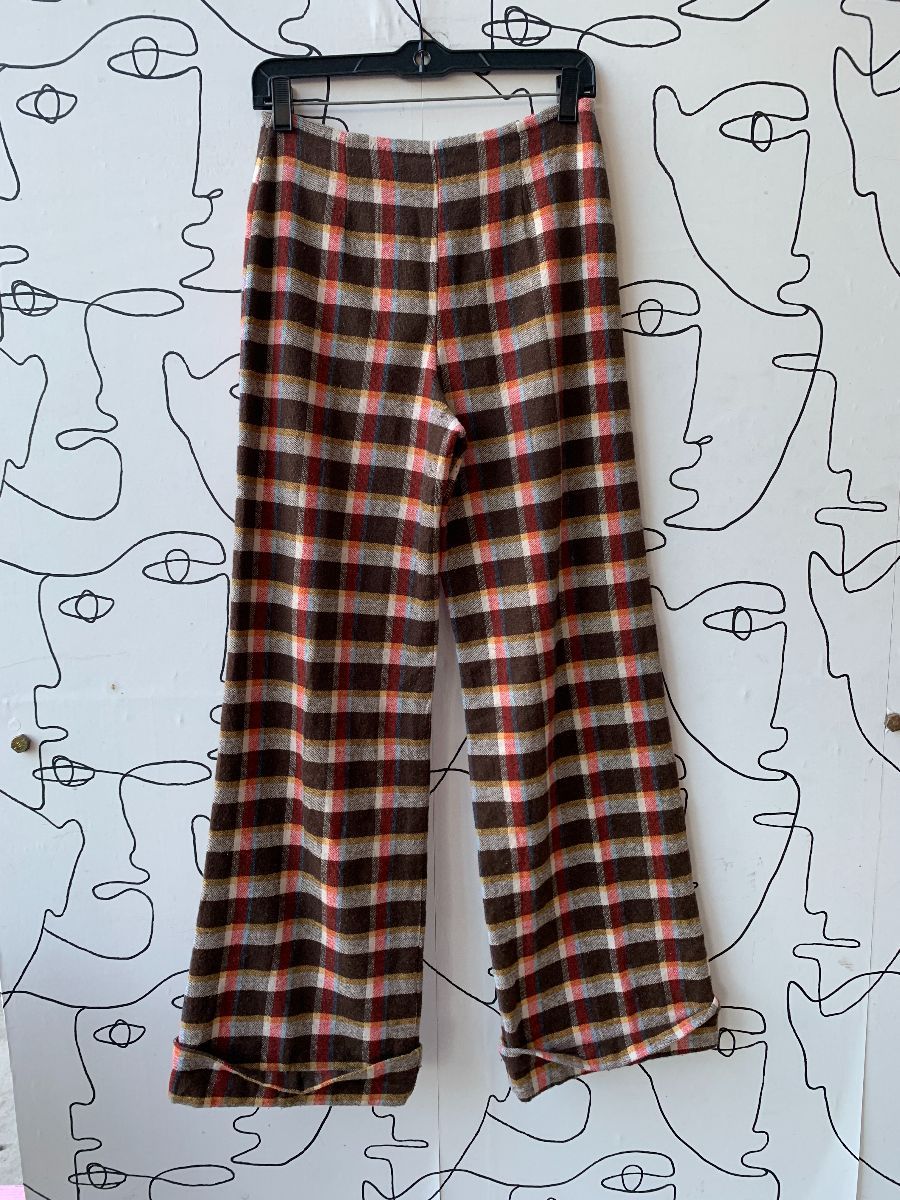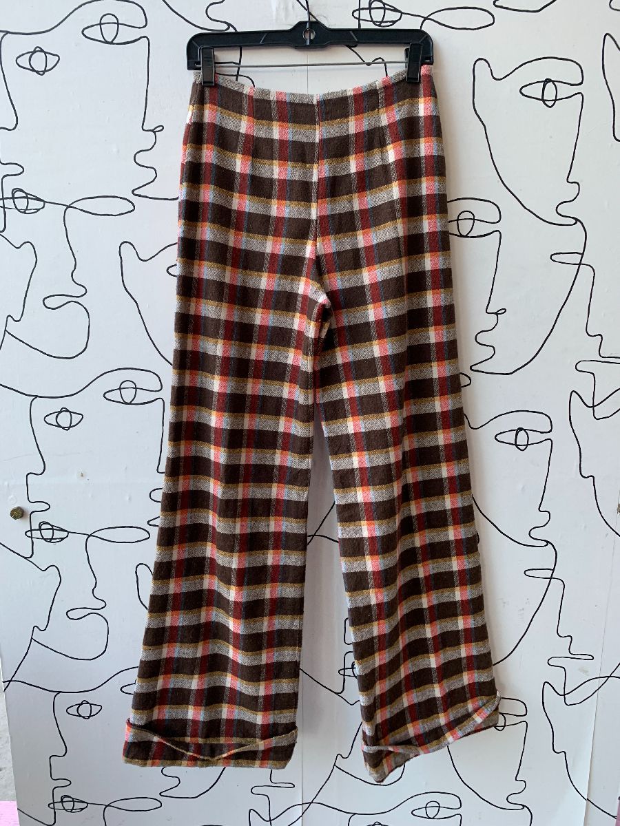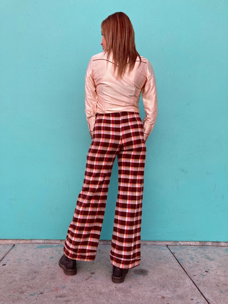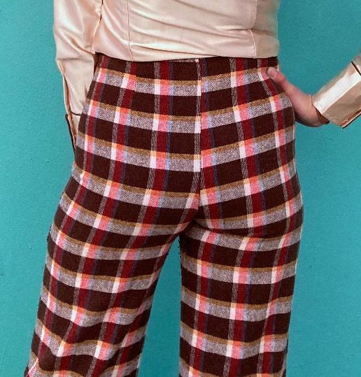 AMAZING 1970S 100% WOOL PLAID PRINT SUPER WIDE LEG PANTS