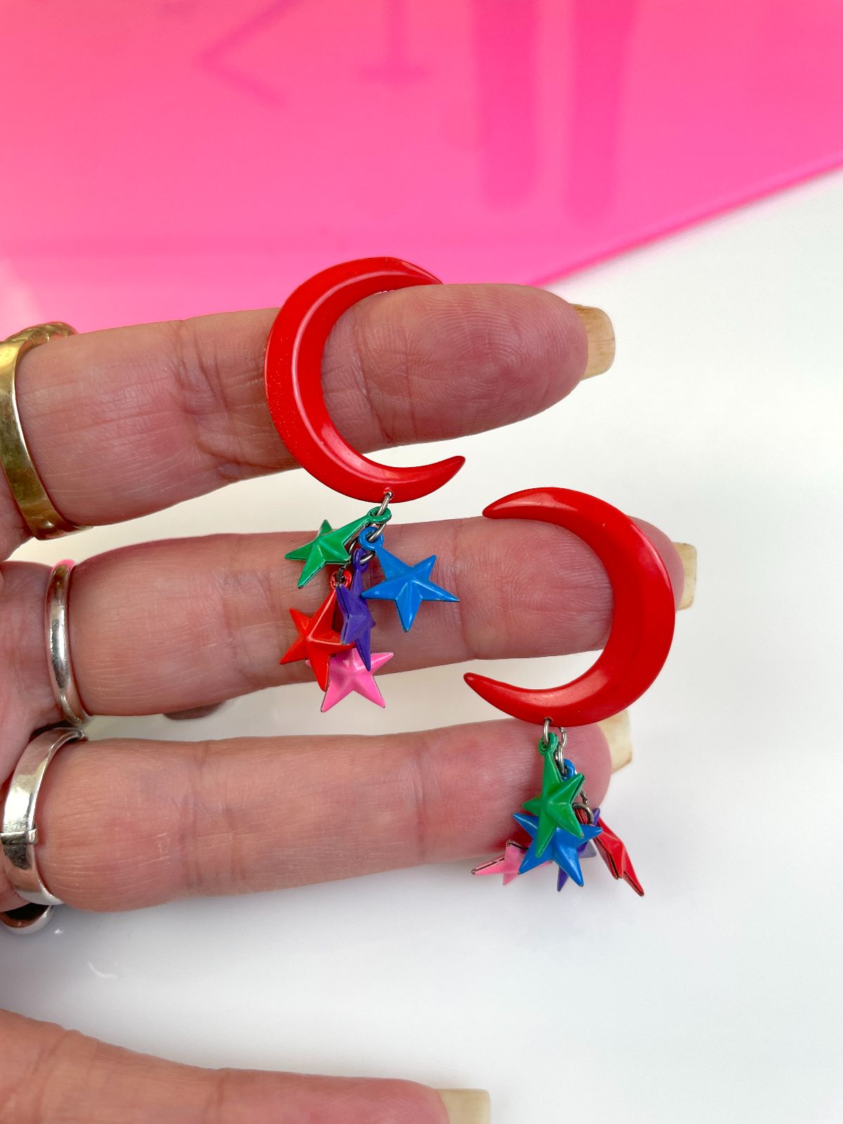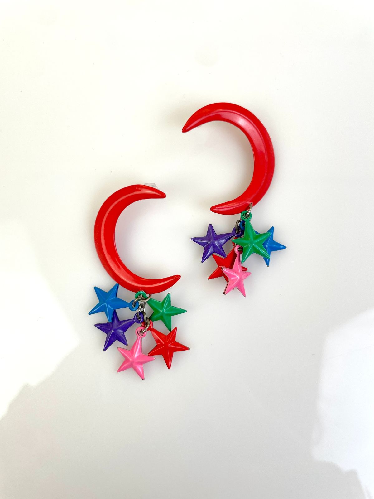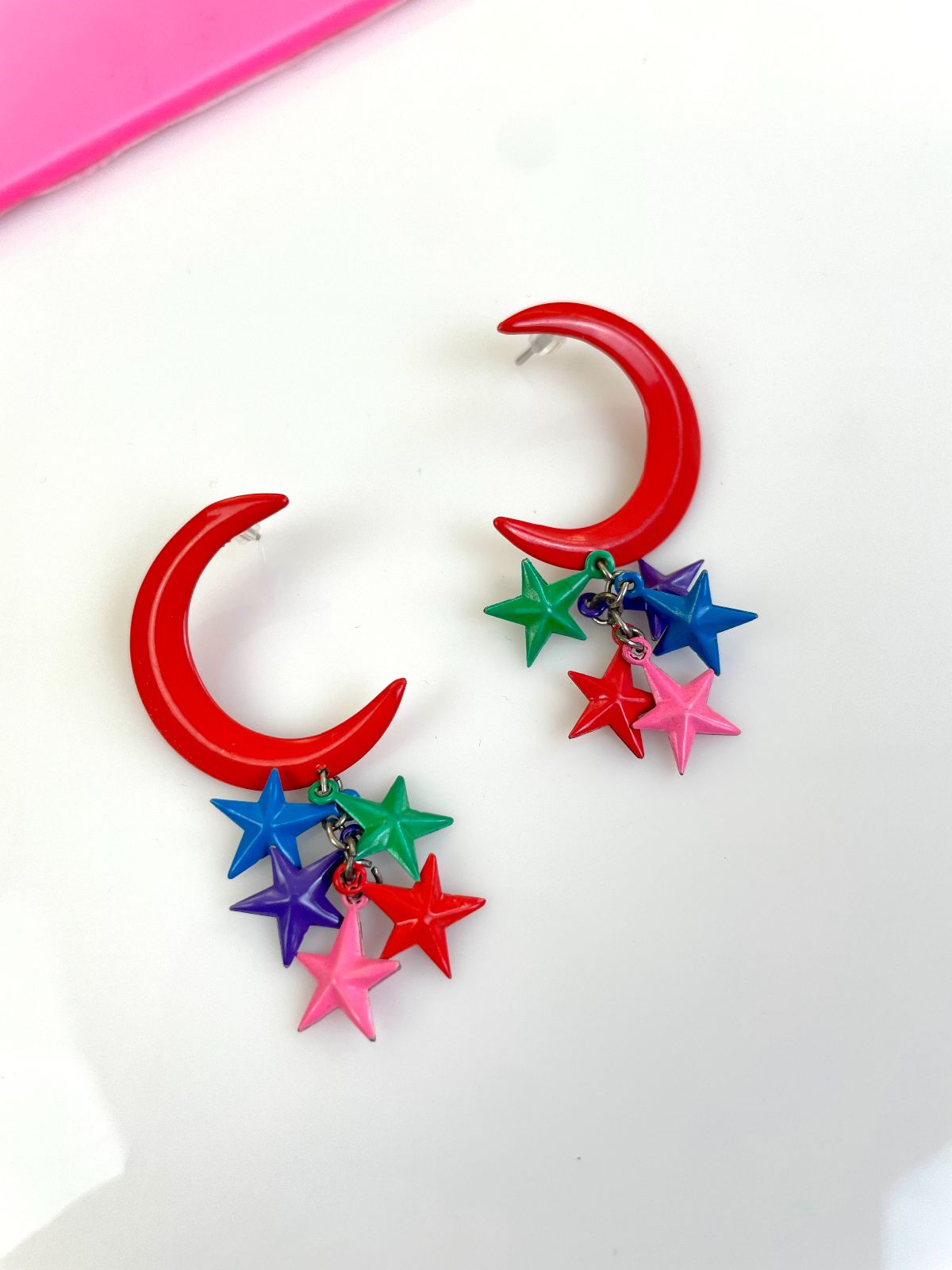 AMAZING! 1980S-90S COLORFUL MOON & HANGING STARS POST EARRINGS