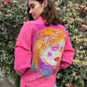 DISTRESSED BLONDIE CUSTOM HAND PAINTED SILK SCREEN GRAPHIC DENIM JACKET