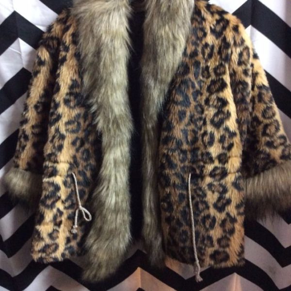 JACKET – FAUX LEOPARD FUR W/CONTRASTING FAUX FUR COLLAR & CUFFS – SATIN LINING