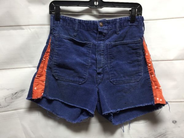 AMAZING RETRO CORDUROY SHORTS W/ FUNKY INSERTED PRINT PANELS DOWN SIDES