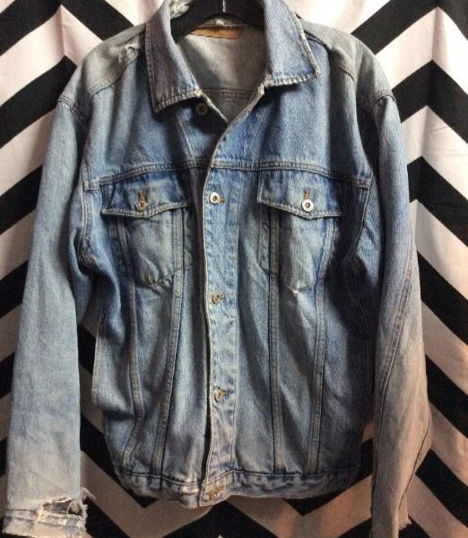 RAD 1990S OVERSIZED COLOR BLOCK DENIM JACKET STRIPED SLEEVES