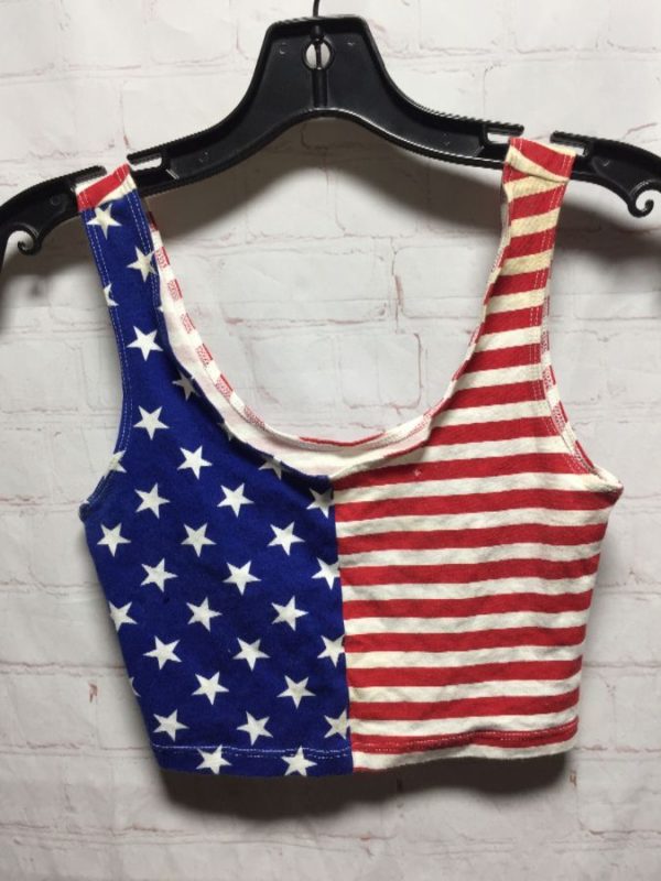 Tank top, cropped, American flag design, red/white/blue, size S As is