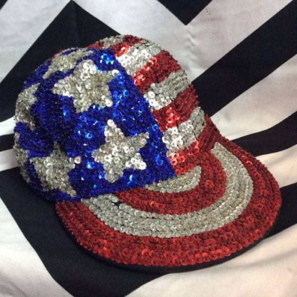 BASEBALL STYLE CAP – SEQUIN EMBELISHMENT – AMERICAN FLAG DESIGN