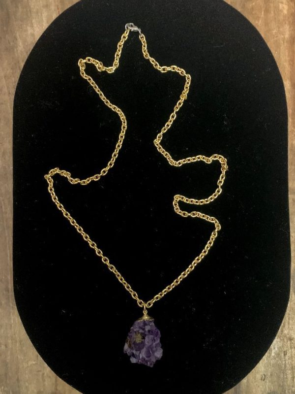 AMETHYST CRYSTAL NECKLACE THICK 18K GOLD PLATED LINK CHAIN