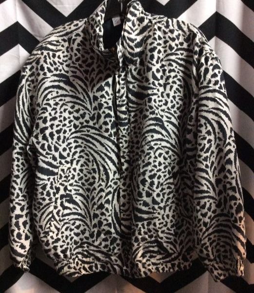Bomber jacket, silk, zip-up, animal print design, black/white, size S