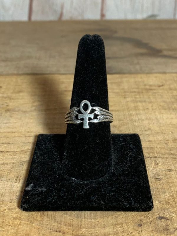 Ring, Ankh design, 925 sterling silver metal, silver, size 9