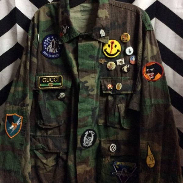 ARMY JACKET CAMO W/PINS/ PATCHES 4 FRONT POCKETS