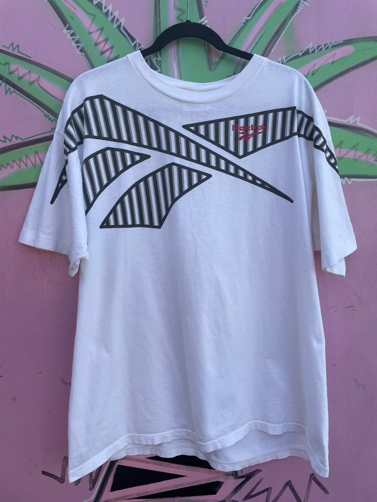 *AS-IS* 1990S OVERSIZED STRIPED REEBOK LOGO GRAPHIC T-SHIRT