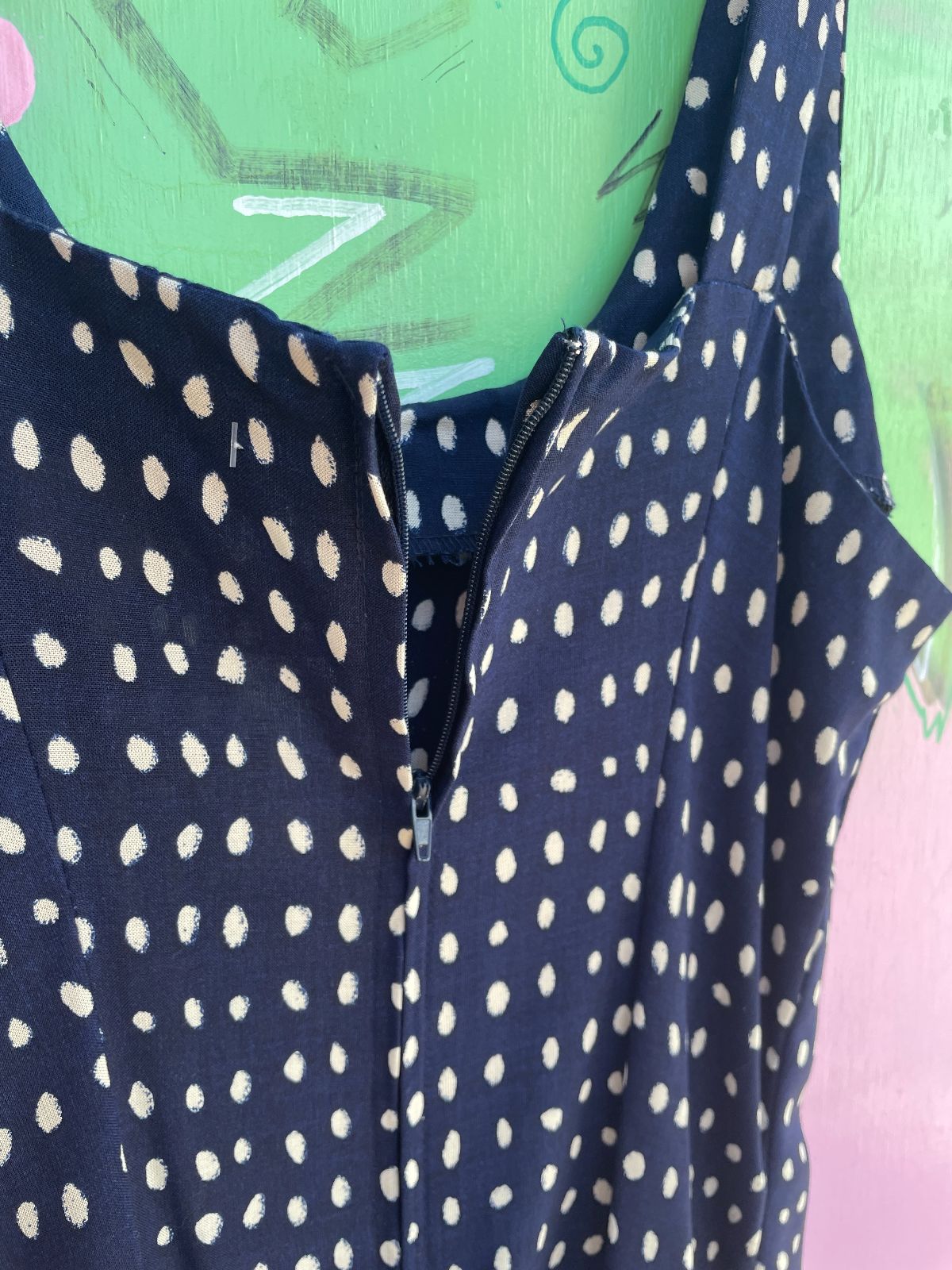 *AS-IS* 1990S POLKA DOT RAYON FIT & FLARE MINI DRESS