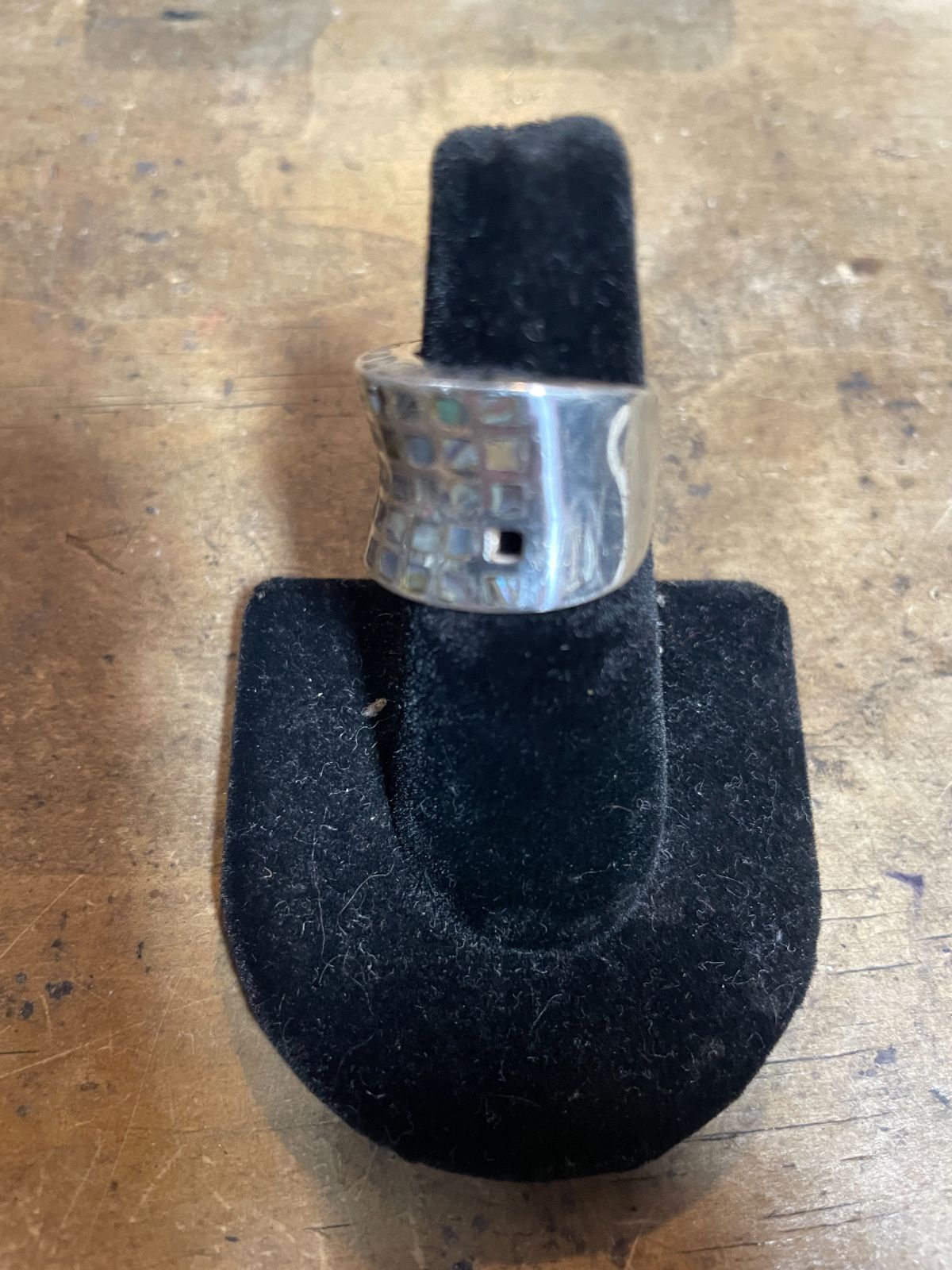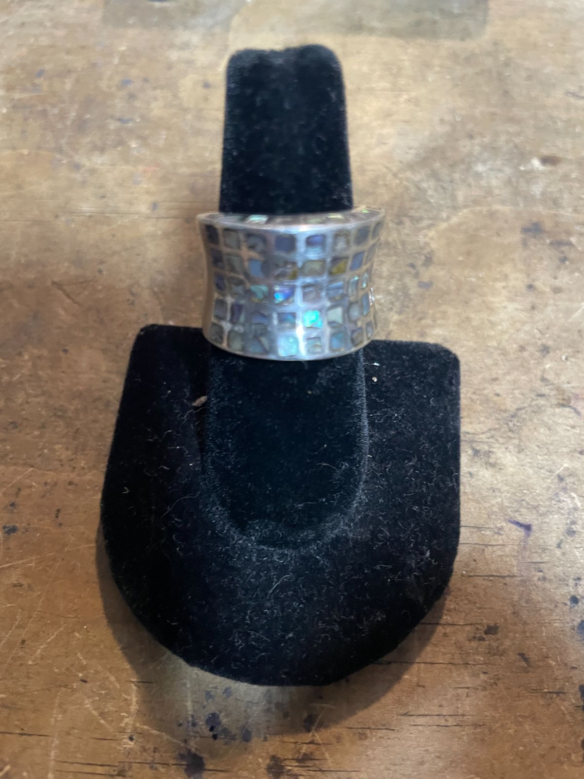*AS-IS* 925 INLAY MOTHER OF PEARL WIDE BAND RING – STERLING SILVER