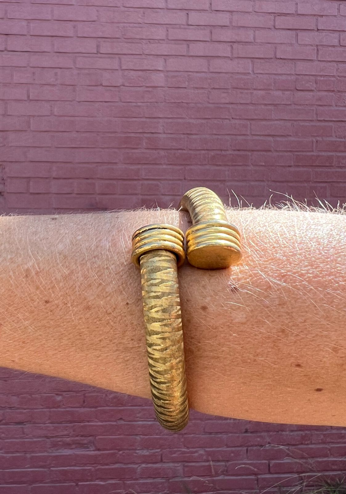 *AS-IS* COOL! TUBULAR ETCHED BRASS BANGLE BRACELET CAPPED ENDS