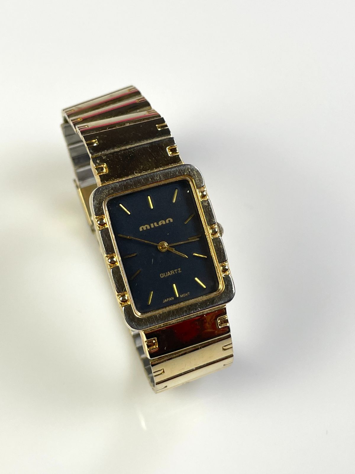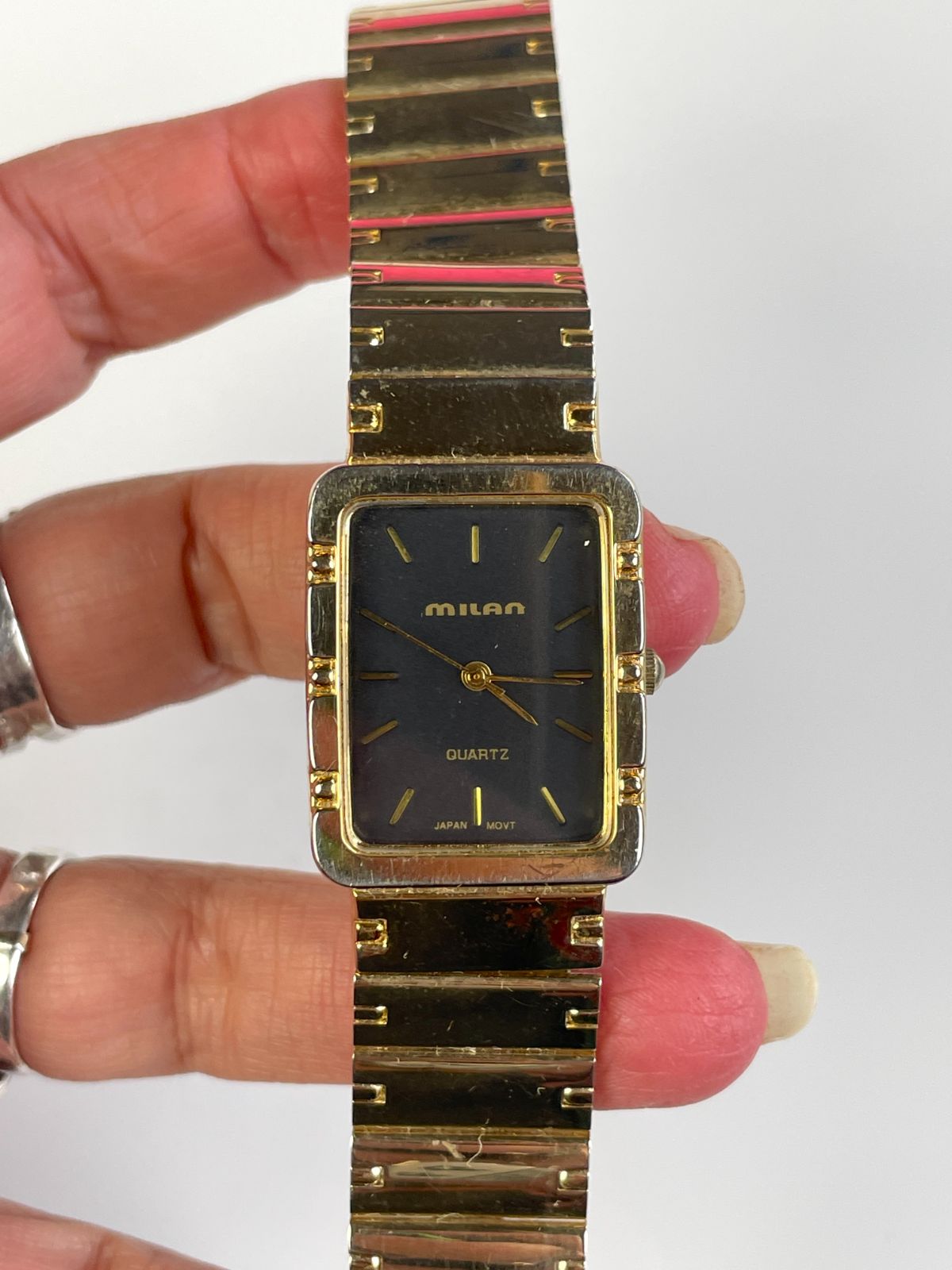 AS-IS GOLD PLATED WATCH SQUARE FACE BLACK DIAL, JAPAN MOVEMENT