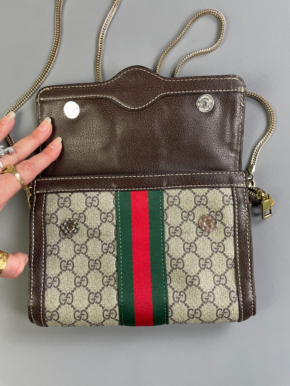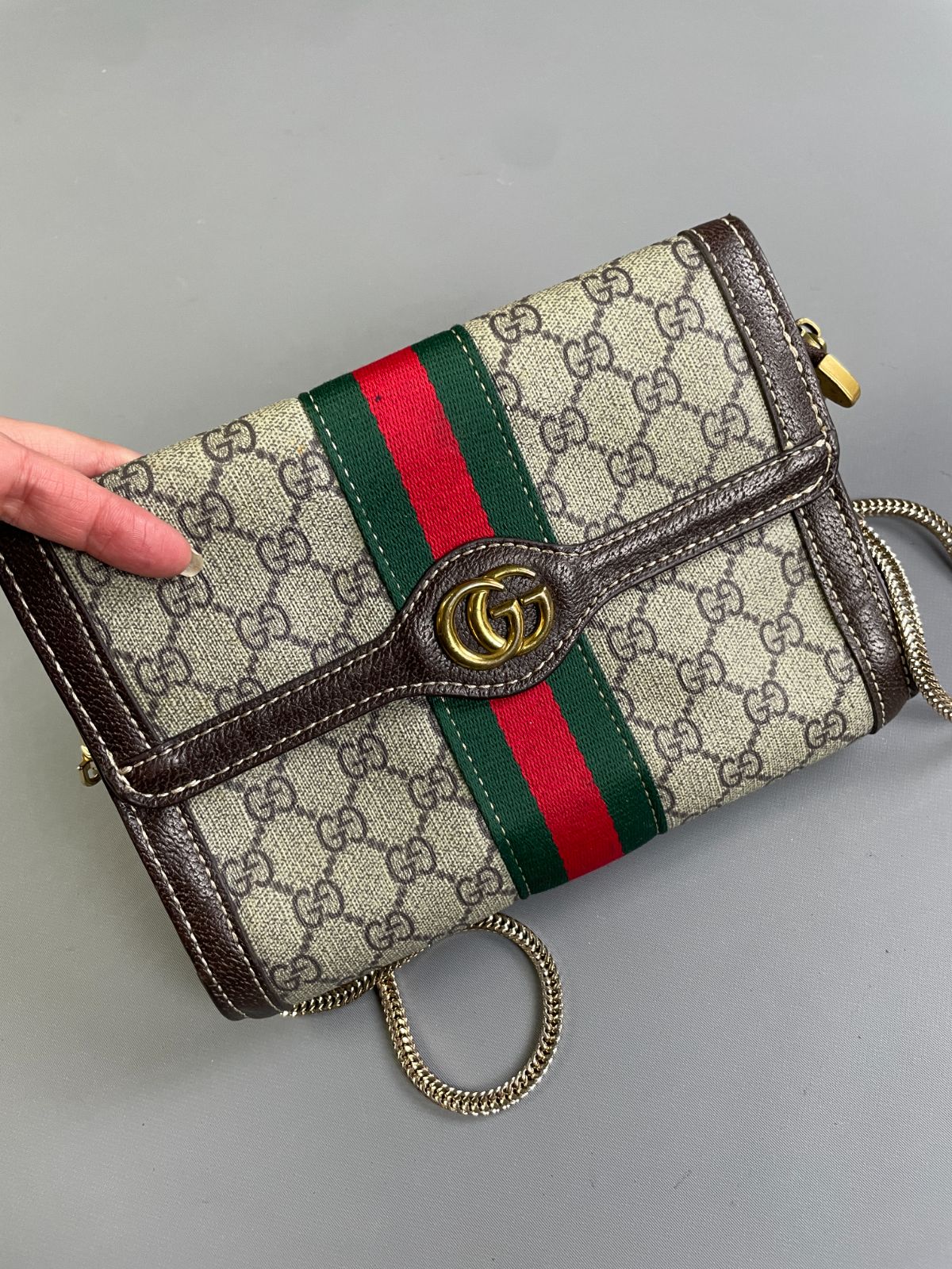 BRAND: GUCCI COLOR: BROWN, WHITE, GREEN, RED
