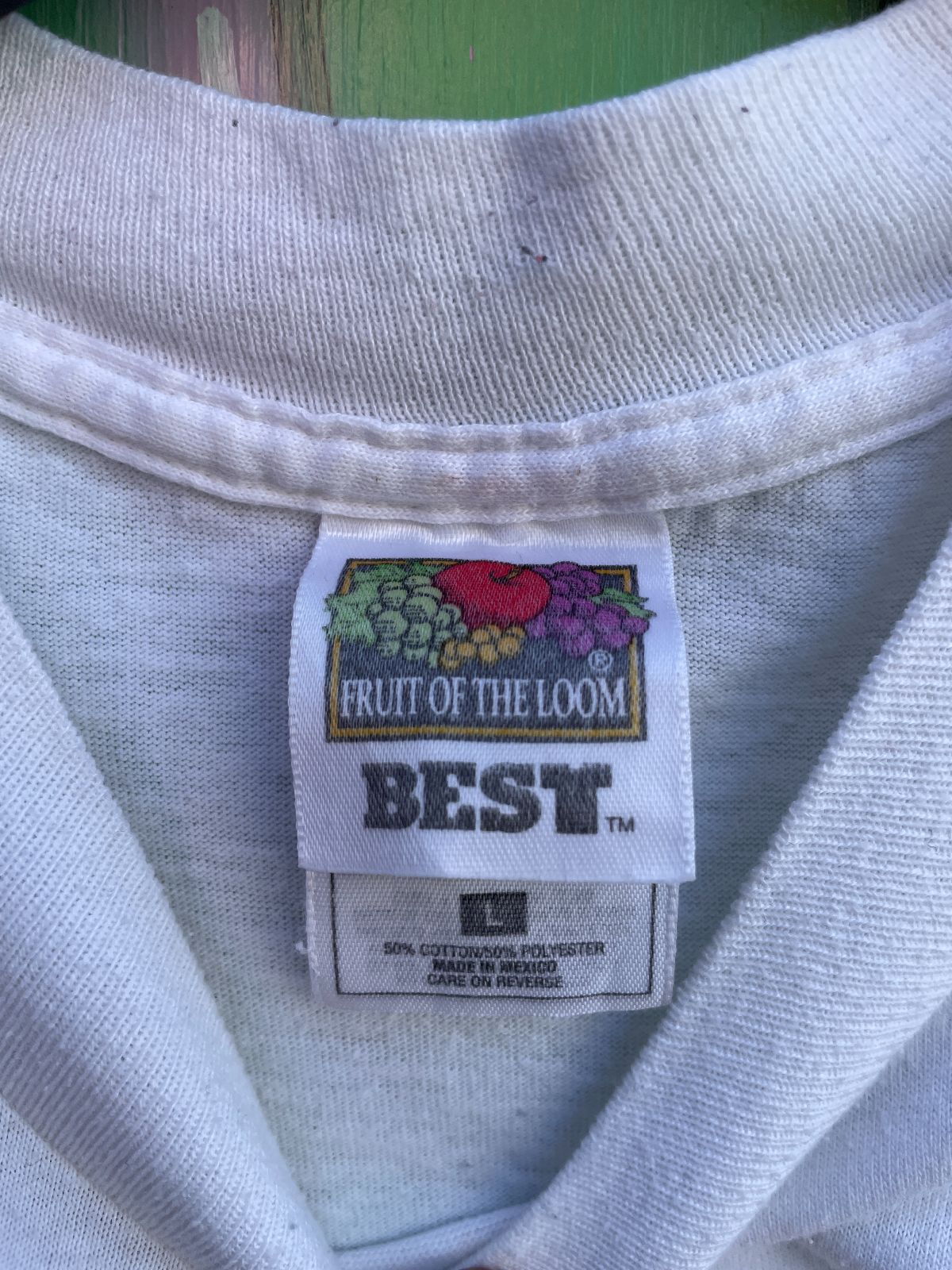 BRAND: FRUIT OF THE LOOM COLOR: WHITE, MULTI SIZE: L CONDITION: LIGHT MARKS THROUGHOUT
