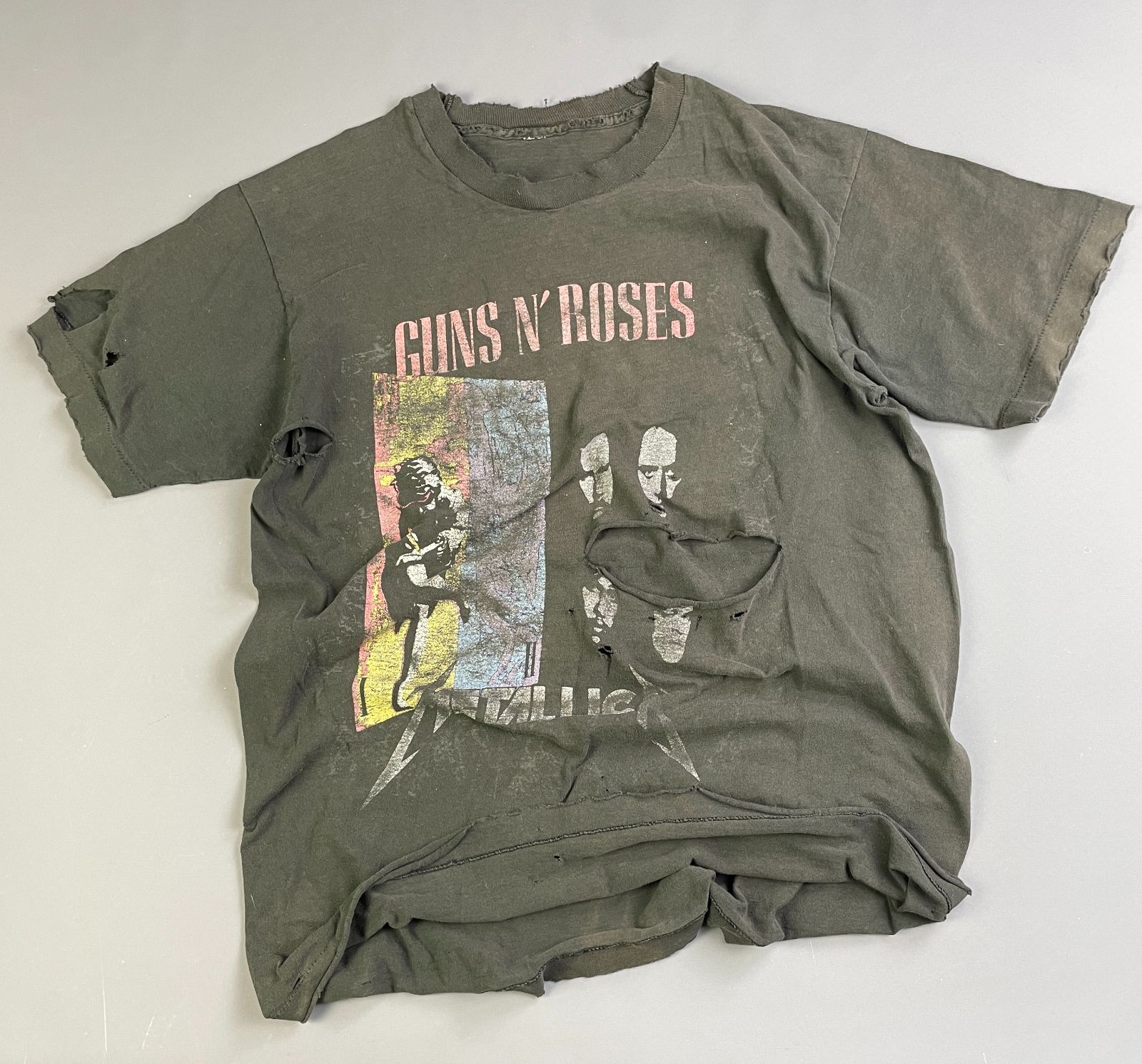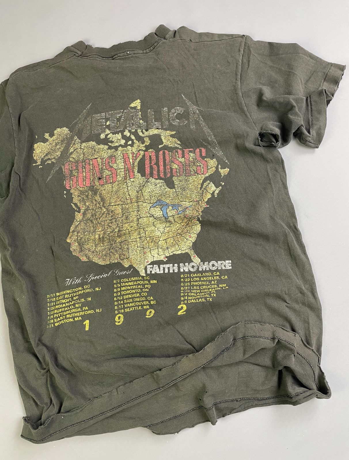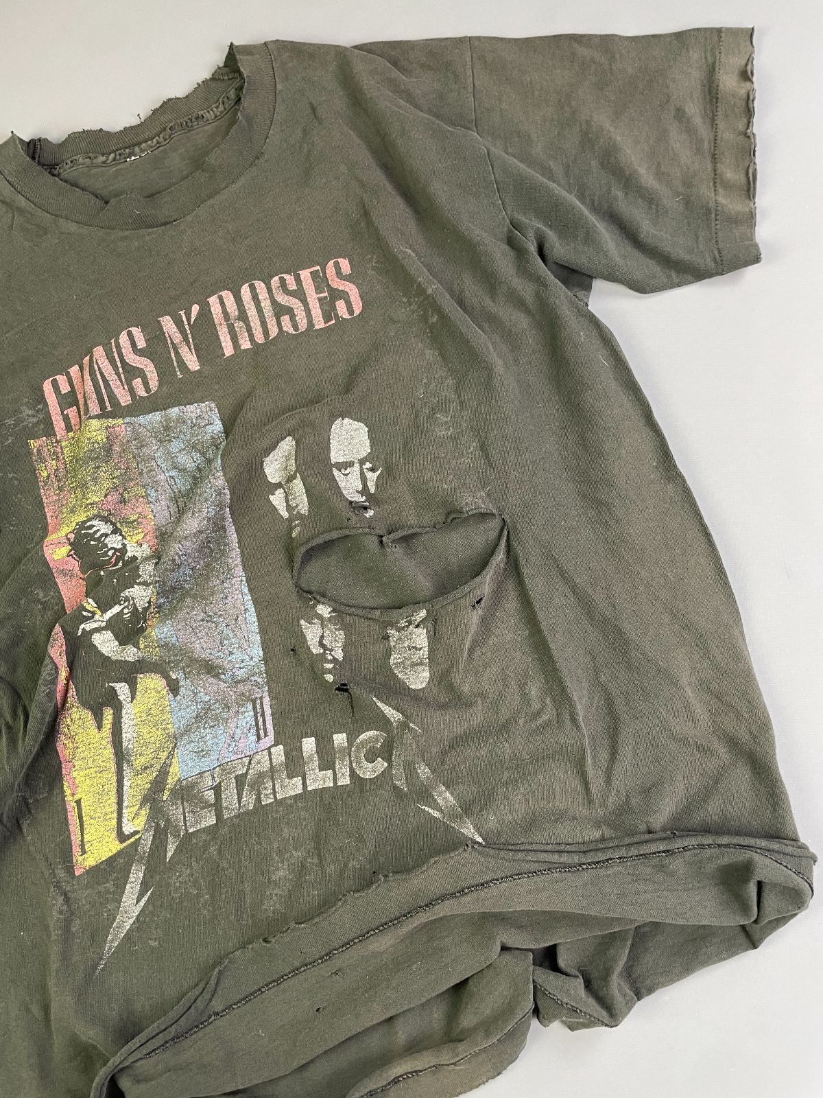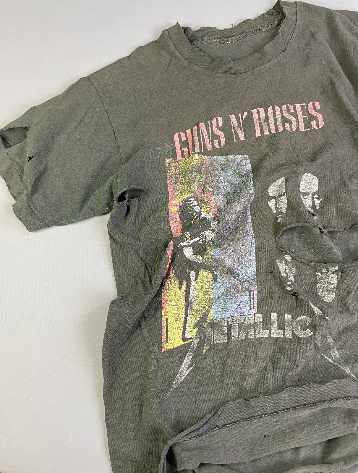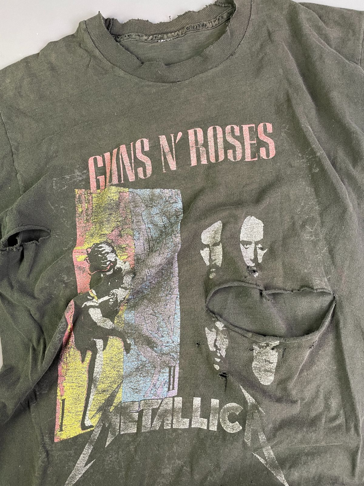 *AS-IS* RAD! PERFECTLY DISTRESSED, TATTERED & FADED GUNS & ROSES, METALLICA & FAITH NO MORE SINGLE STITCH T-SHIRT