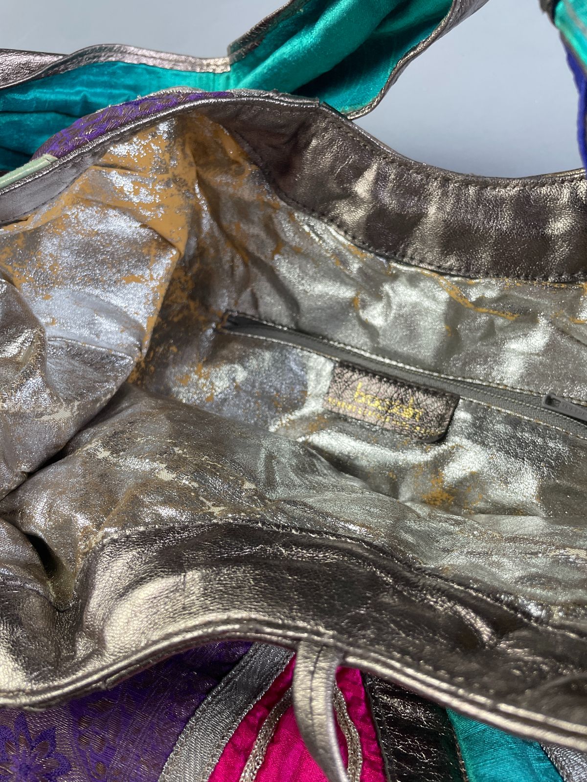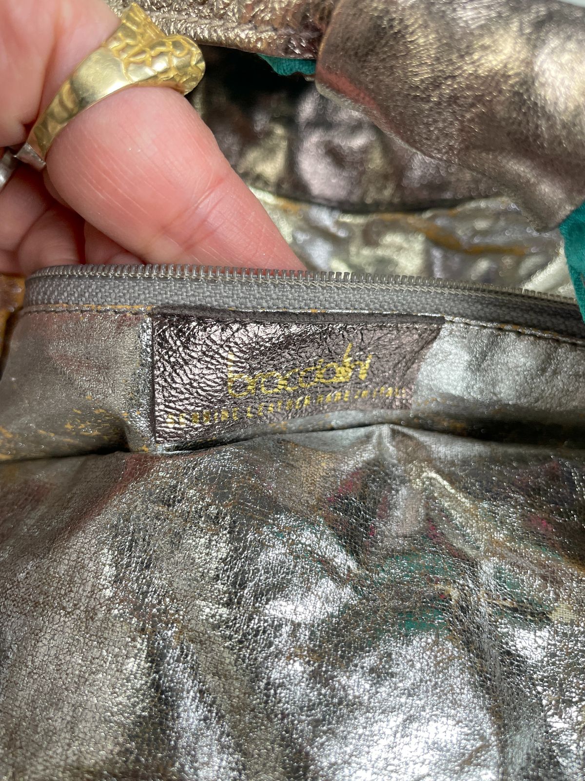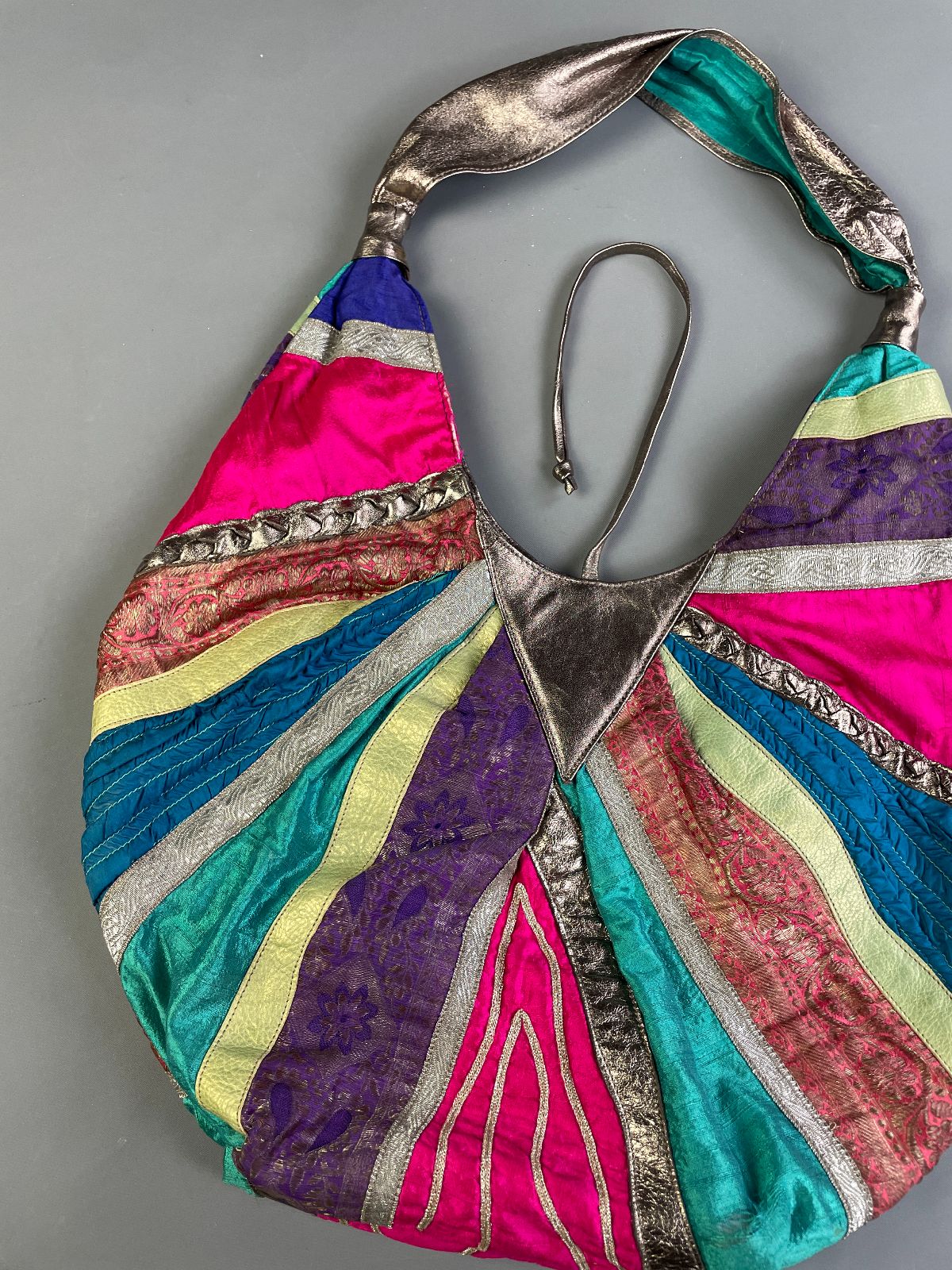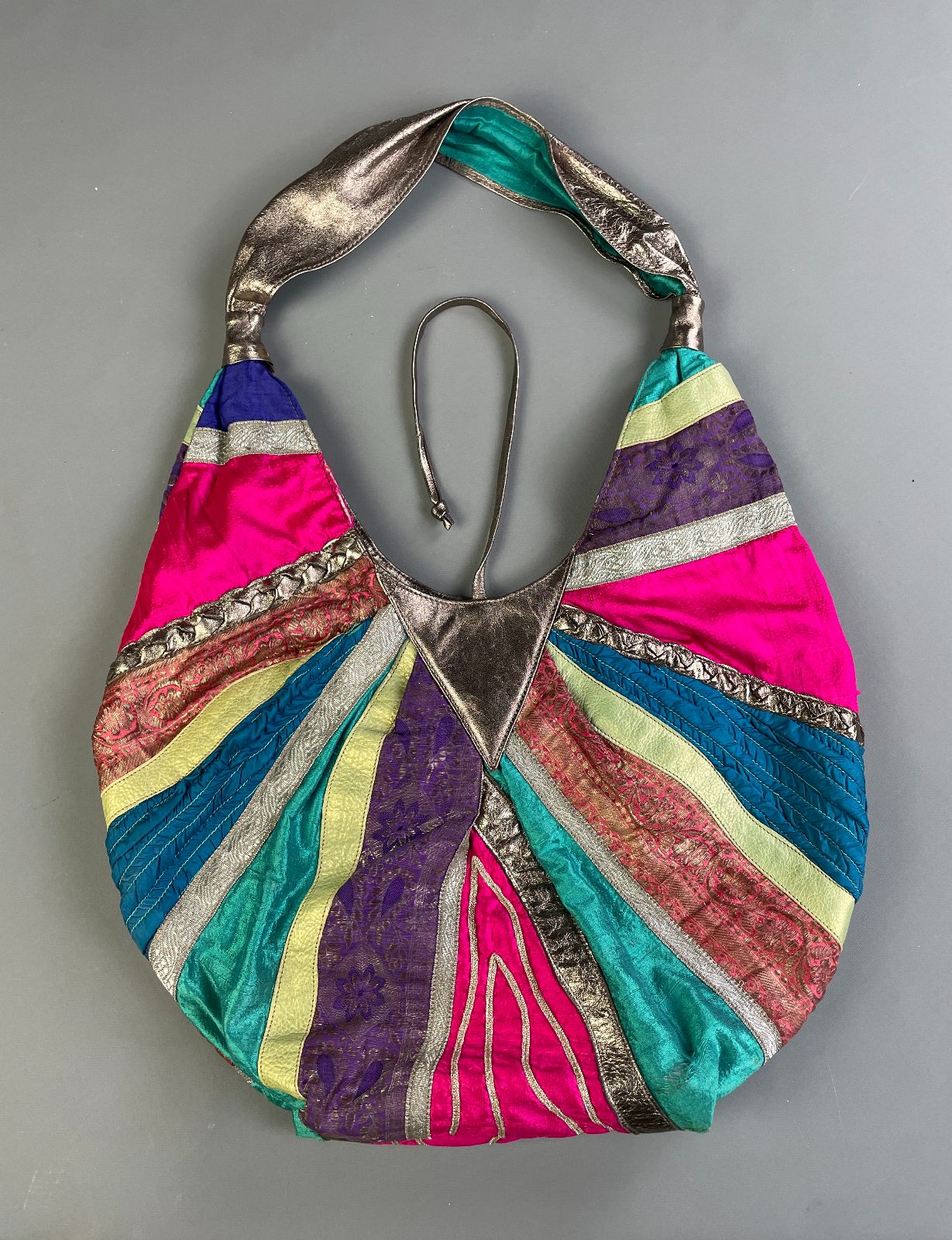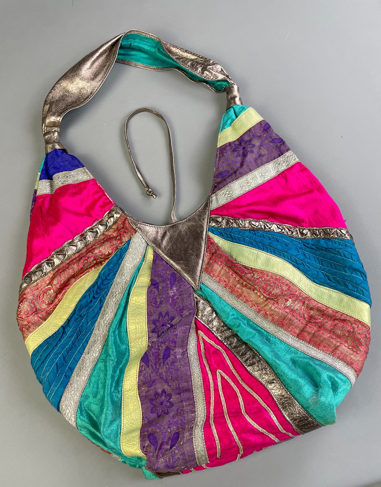 *AS-IS* WILD! MADE IN ITALY ABSTRACT TEXTILE & METALLIC LEATHER PATCHWORK OVERSIZED HOBO STYLE SHOULDER BAG